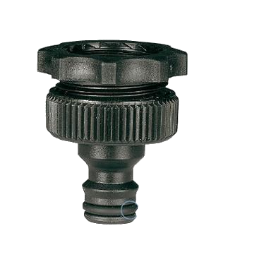 Adapter met 1" binnendraad en 3/4" reductie voor aansluiting op de tuinkraan. Hiermee kunnen tuinslangen met een snelkoppeling worden aangesloten op de tuinkraan.