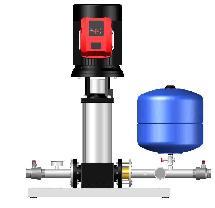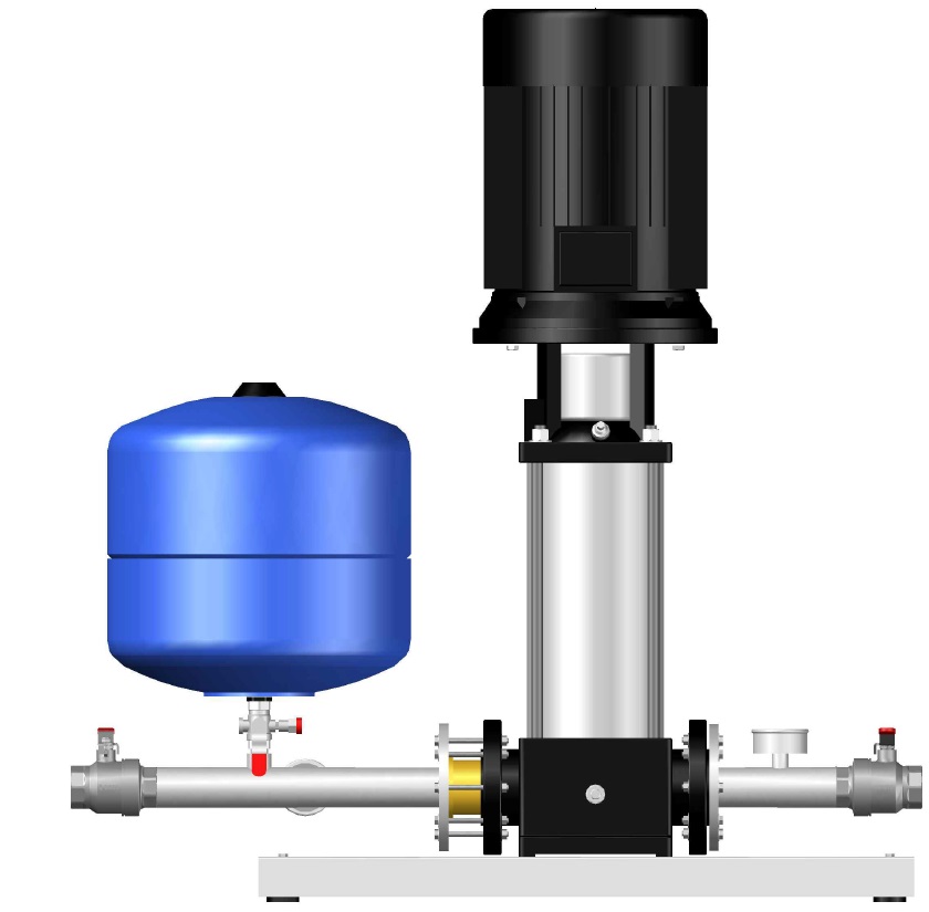 Het B-ATS-E drukverhogingssysteem is een volledig autonome, complete oplossing voor drukverhoging, waarmee de druk in uw leiding te allen tijde constant wordt gehouden. Dit drukverhogingssysteem is een aansluitklaar, volledig geassembleerd en getest compleet product, dat niet alleen bestaat uit een meertraps inline pomp, maar ook uit een zuig- en persleiding van roestvrij staal, een drukvat, een manometer en een terugslagklep aan de perszijde.