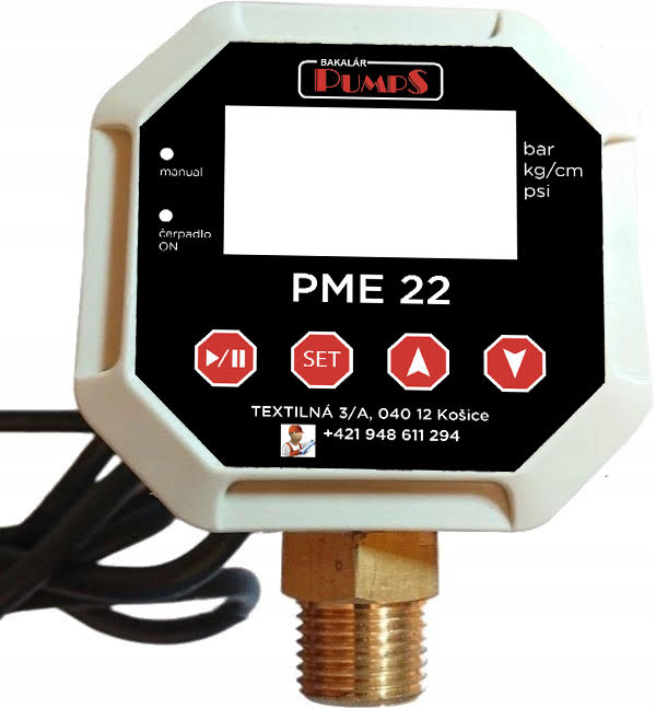 De PumpS PME 22 werkt als een klassieke drukschakelaar, die wordt gebruikt om de pomp te schakelen op basis van de aan- en uitvoerdruk (de druk kan eenvoudig worden aangepast via de bedieningsknoppen zonder mechanische interventie in de schakelaar), verder heeft de PumpS PME 22 een ingebouwde droogloopbeveiliging en instelbare motorbeveiliging. De droogloopbeveiliging is uitgerust met een instelbare automatische herstart en de motorbeveiliging is uitgerust met een instelbare vertraging.