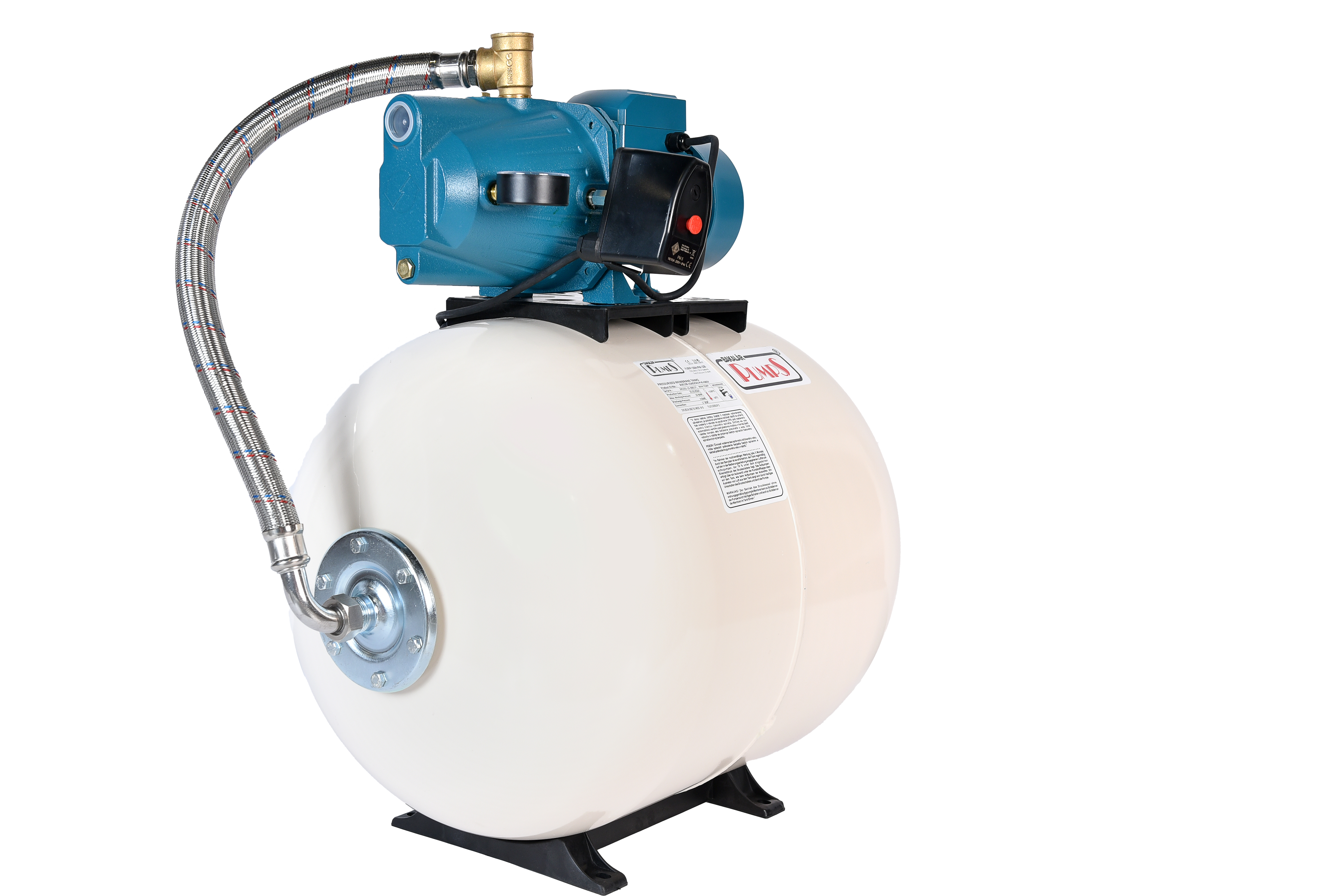 - Drukschakelaar met geïntegreerde uitschakelaar (vereenvoudigt de installatie van de pomp en het uitschakelen van de pomp om de voordruk in de tank te controleren)