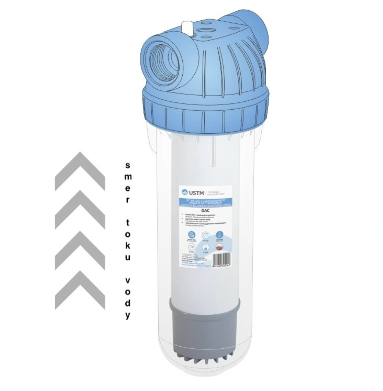 Universeel 10" tweefasig filterpatroon om smaak en geur uit drinkwater te verwijderen. Het water stroomt van onder naar boven langs de liner, waardoor het langer in contact blijft met het filtermedium - actieve kool. De korrelgrootte van de actieve koolstofkorrels is geselecteerd om een maximale absorptie van ongewenste stoffen uit je water te garanderen.