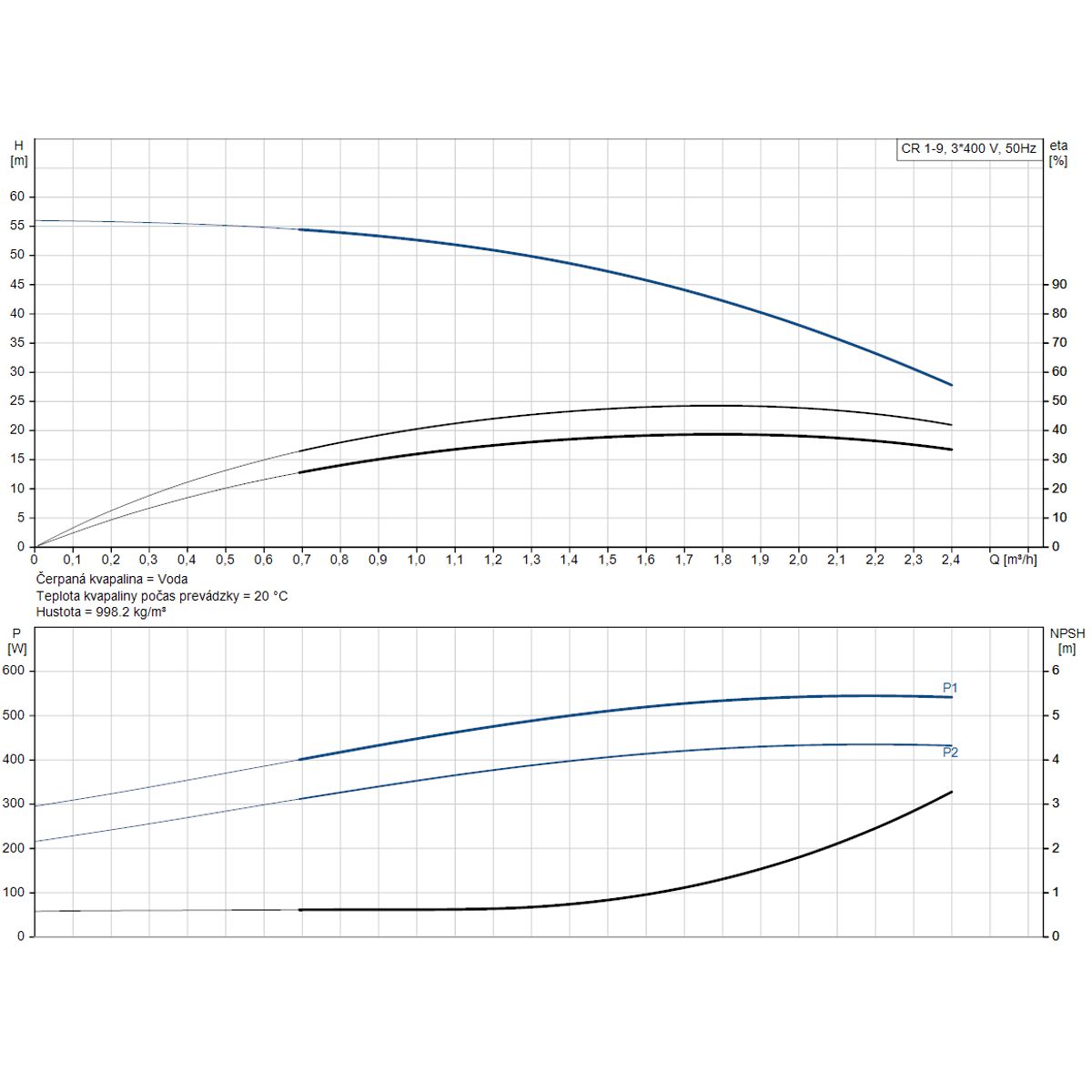 | Opgenomen vermogen (P2) vereist door de pomp | 0,55 kW |