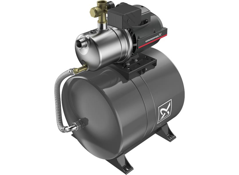 De Grundfos JP 4-47 PT-H bestaat uit een Grundfos JP pomp, drukschakelaar, manometer en een 60 liter Grundfos GT-H horizontaal membraandrukvat. De JP 4-47 PT-H biedt het gemak van een constante waterdruk met automatische start en stop. Dit wordt geregeld door een gecombineerde drukschakelaar en druktank, waardoor een optimale start/stop wordt gegarandeerd. Het drukvat beperkt het aantal starts/stops, omdat het water in de tank kan worden gebruikt zonder de pomp te starten bij een laag waterverbruik of verlies door doorsijpeling. De afsluitdruk is ingesteld op 2,2 bar. De constructie is robuust en gemaakt van corrosiewerende materialen om een lange levensduur te garanderen. Deze pomp voor huishoudelijk water zorgt voor optimale zuigkarakteristieken met een aanzuigcapaciteit tot 8 meter. De zelfaanzuigende pomp zorgt ook voor een stabiele werking omdat hij vloeistof onder het inlaatniveau kan pompen en een mengsel van lucht en vloeistof kan verwerken. De JP pomp heeft een ingebouwde thermische beveiliging die de pomp onmiddellijk stopt als deze oververhit raakt. De motor is luchtgekoeld en gelagerd voor een stille werking.