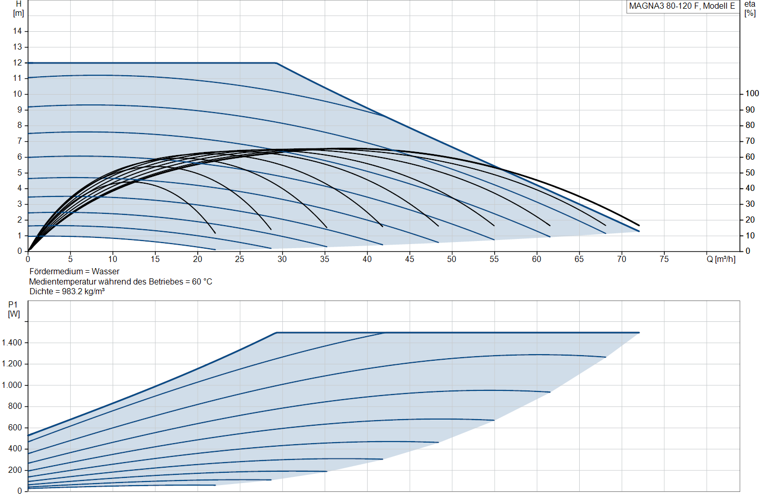 Vermogenscurve van de pomp