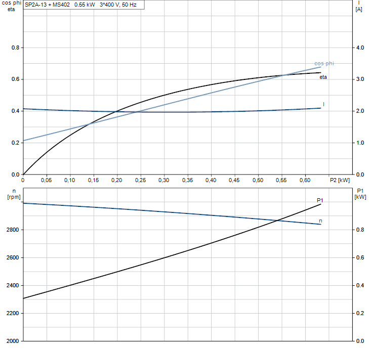 - Nominaal motorvermogen (P2): 0,55 kW