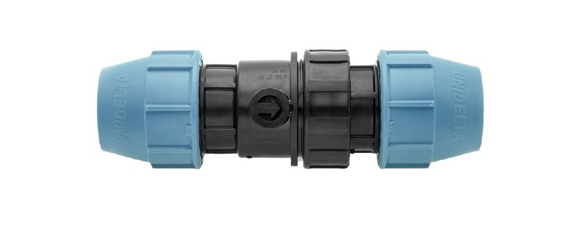 Een belangrijk voordeel van de Unidelta PE terugslagklep is het installatiegemak. Je hebt geen teflontape of gereedschap nodig om hem te installeren.