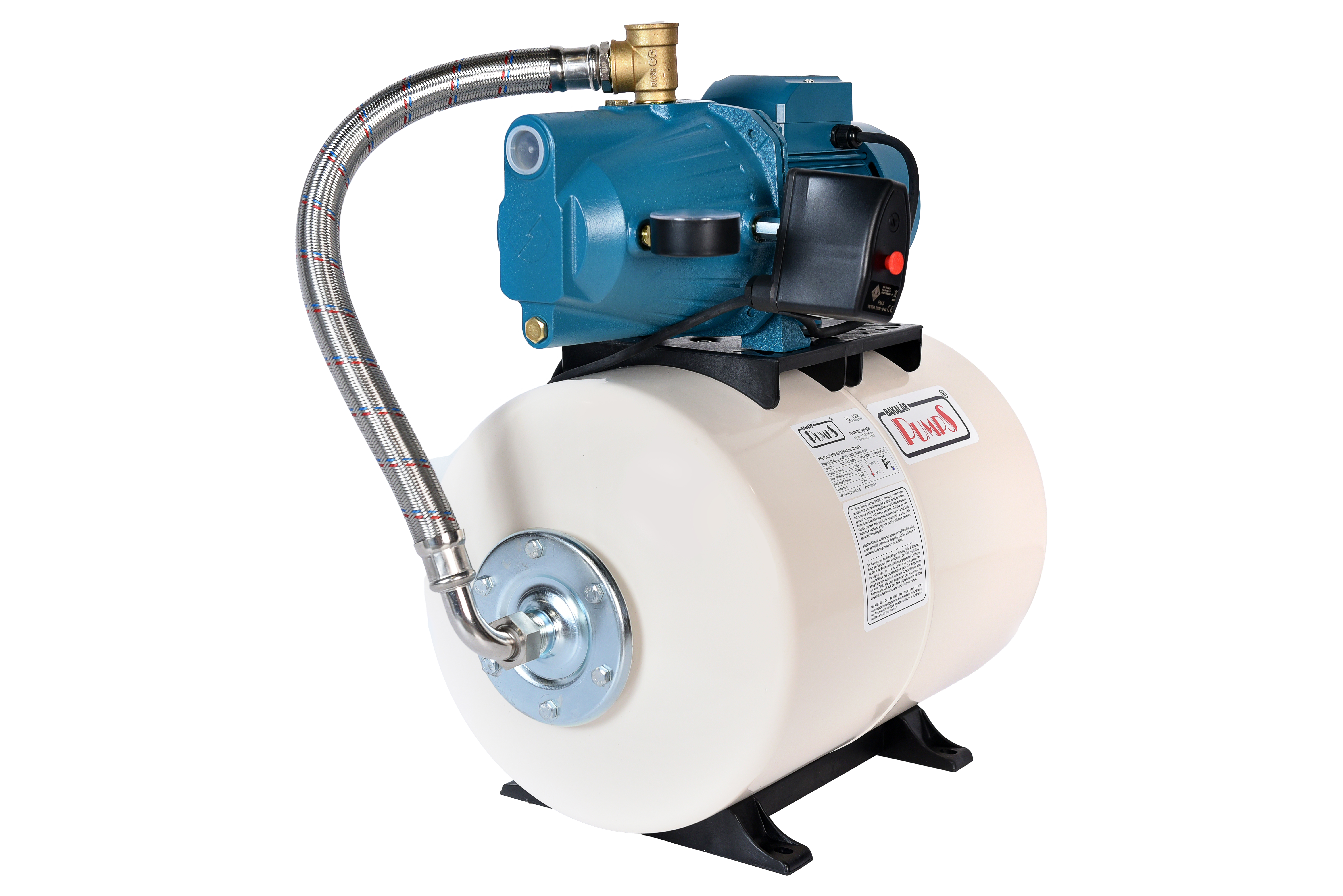 - Drukschakelaar met geïntegreerde uitschakelaar (vereenvoudigt de installatie van de pomp en het uitschakelen van de pomp om de voordruk in de tank te controleren)