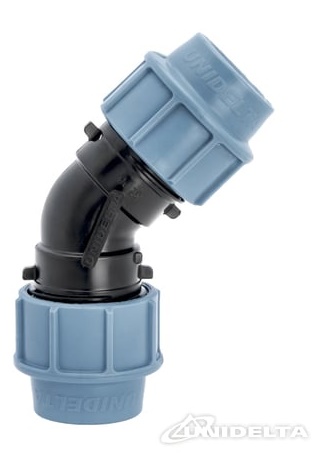 Kunststof bocht 45° voor LPDE polyethyleen buis in afmeting 32.