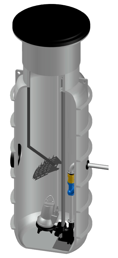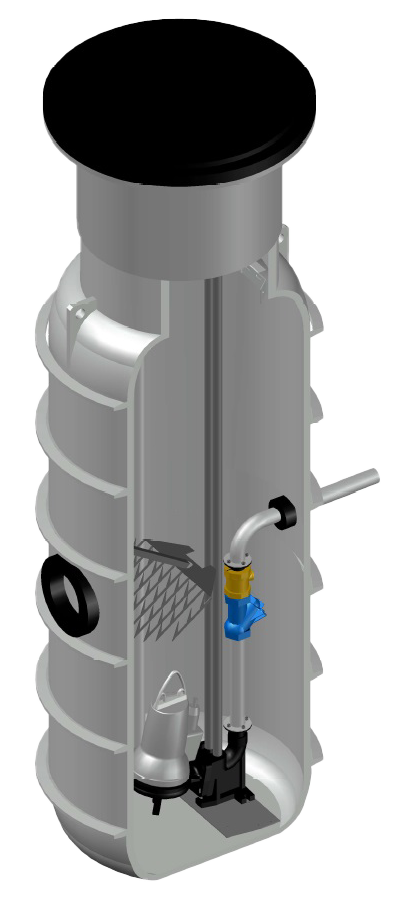 Het pompstation wordt gemonteerd geleverd - klaar om in de uitgraving te worden geïnstalleerd. (Verschil met concurrenten)