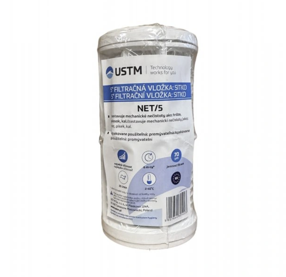 Het filterpatroon met een maaswijdte van 5" en een poriegrootte van 70µm is geschikt als eerste stap van mechanische filtratie als het water een hogere graad van mechanische onzuiverheden, slib, zand, enz. vertoont. Omdat het wasbaar en herbruikbaar is, helpt het om kosten te besparen. Doordat het de eerste stap is om grovere mechanische onzuiverheden op te vangen, beschermt het ook de andere stappen of filterpatronen die gemaakt zijn van gewikkeld of vast polypropyleen, waardoor hun levensduur wordt verlengd.