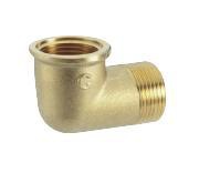 Messing elleboog met binnen- en buitendraad en identieke draadmaten.