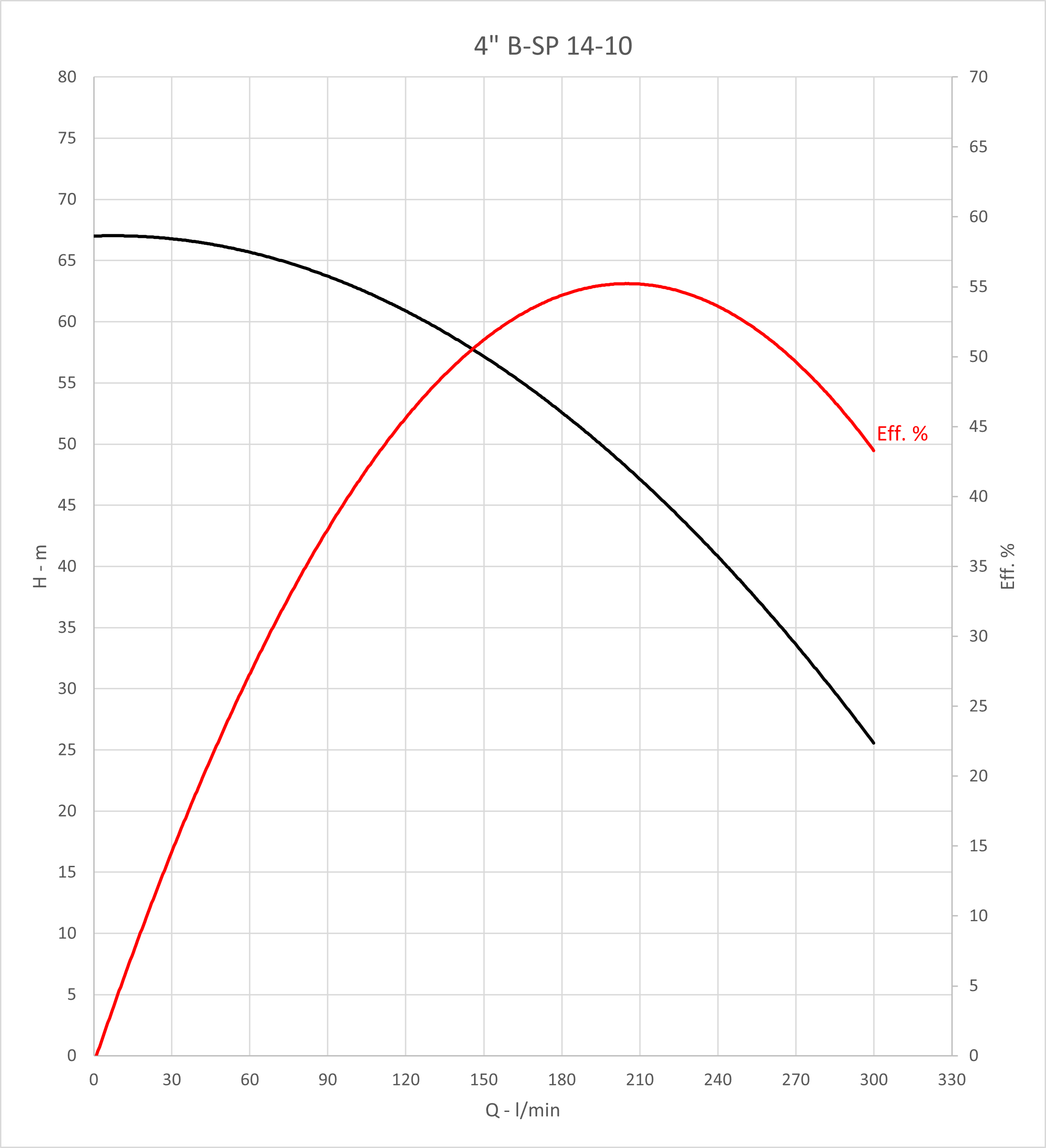 Q max: 300 l/min Spanning: 400 V H max: 34 m P max: 1,5 kW DN afvoer - diameter: 2 '' Max. temperatuur van verpompte vloeistof: 35 °C Diameter pomp: 98 mm Huidige: 3,9 A Max. diepgang motor: 100 m Type motor: Franklin Electric |