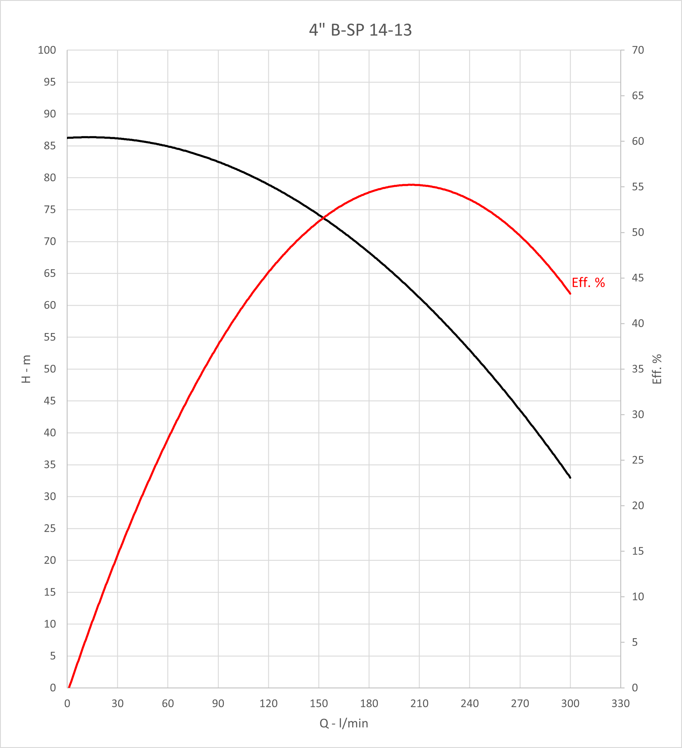 Q max: 300 l/min Spanning: 400 V H max: 124 m P max: 5,5 kW DN afvoer - diameter: 2 '' Max. temperatuur van verpompte vloeistof: 35 °C Diameter pomp: 98 mm Max. diepgang motor: 100 m Max. motorstroom: 12,4 A Type motor: F.B. submersible motors |
