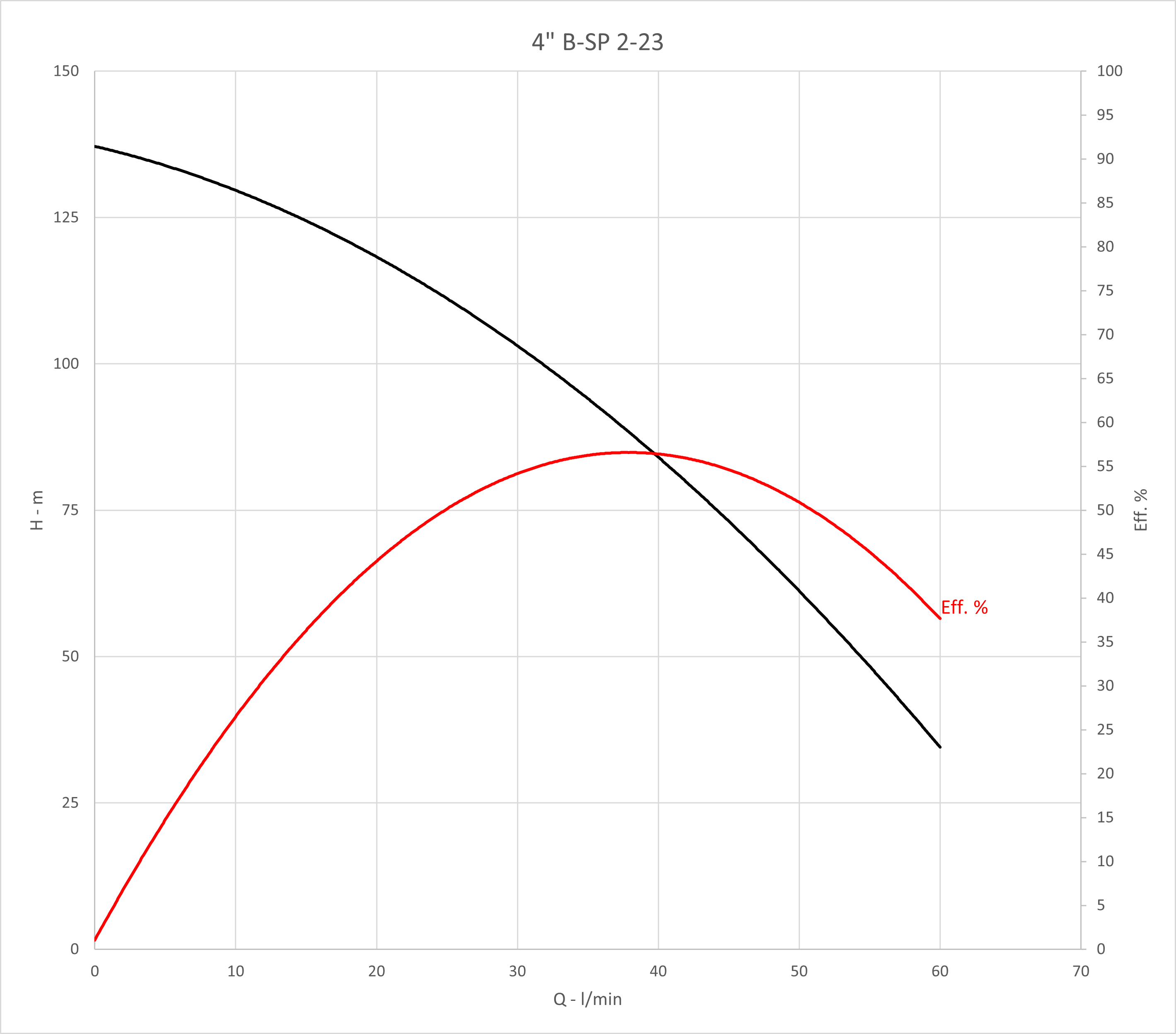 Q max: 60 l/min Spanning: 230 V H max: 79 m P max: 0,55 kW DN afvoer - diameter: 5/4 '' Max. temperatuur van verpompte vloeistof: 35 °C Diameter pomp: 98 mm Max. diepgang motor: 300 m Max. motorstroom: 4,8 A Type motor: F.B. submersible motors |