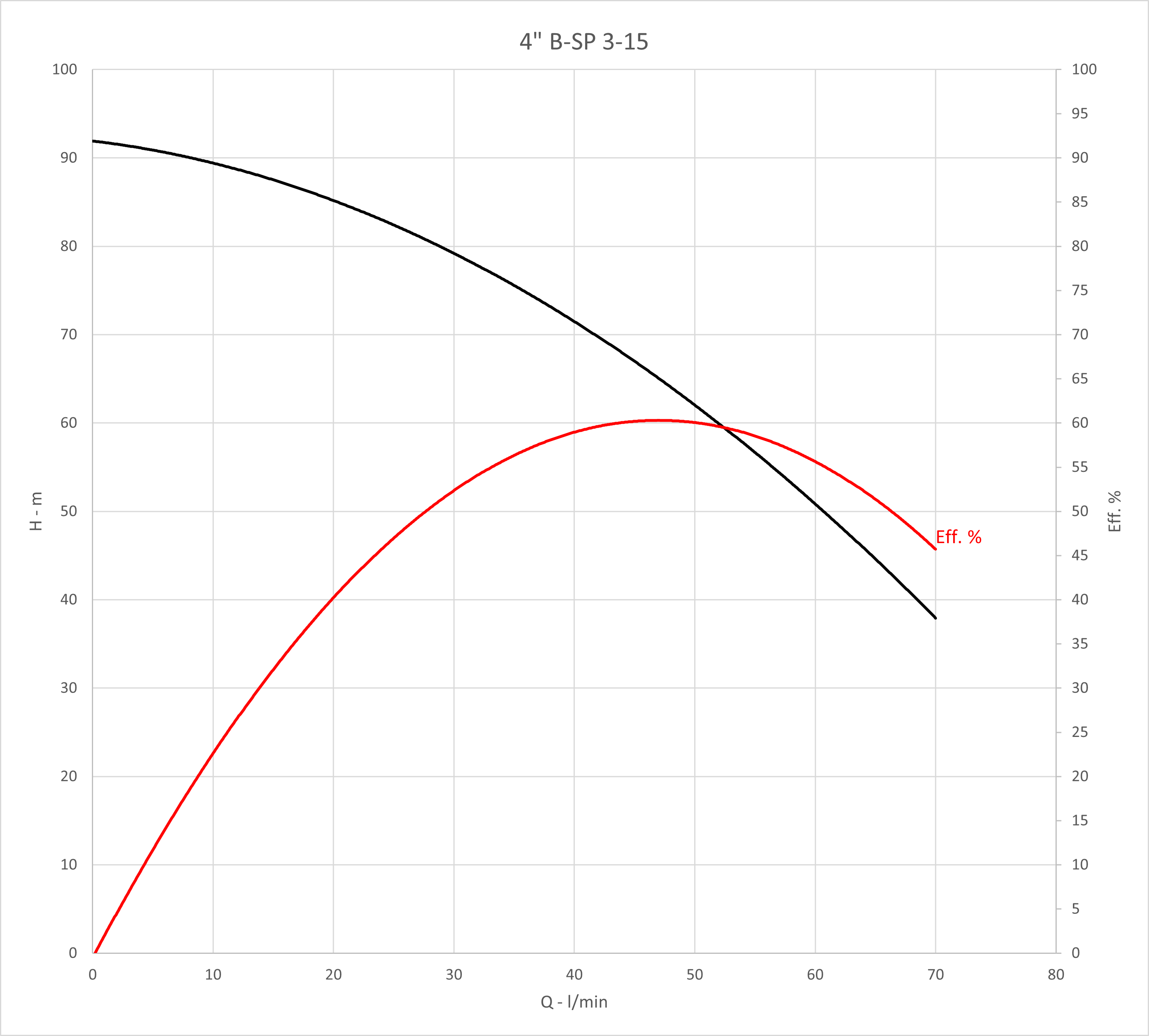 Q max: 70 l/min Spanning: 230 V H max: 56 m P max: 0,55 kW DN afvoer - diameter: 5/4 '' Max. temperatuur van verpompte vloeistof: 35 °C Diameter pomp: 98 mm Max. diepgang motor: 100 m Max. motorstroom: 4 A Type motor: Franklin Electric |