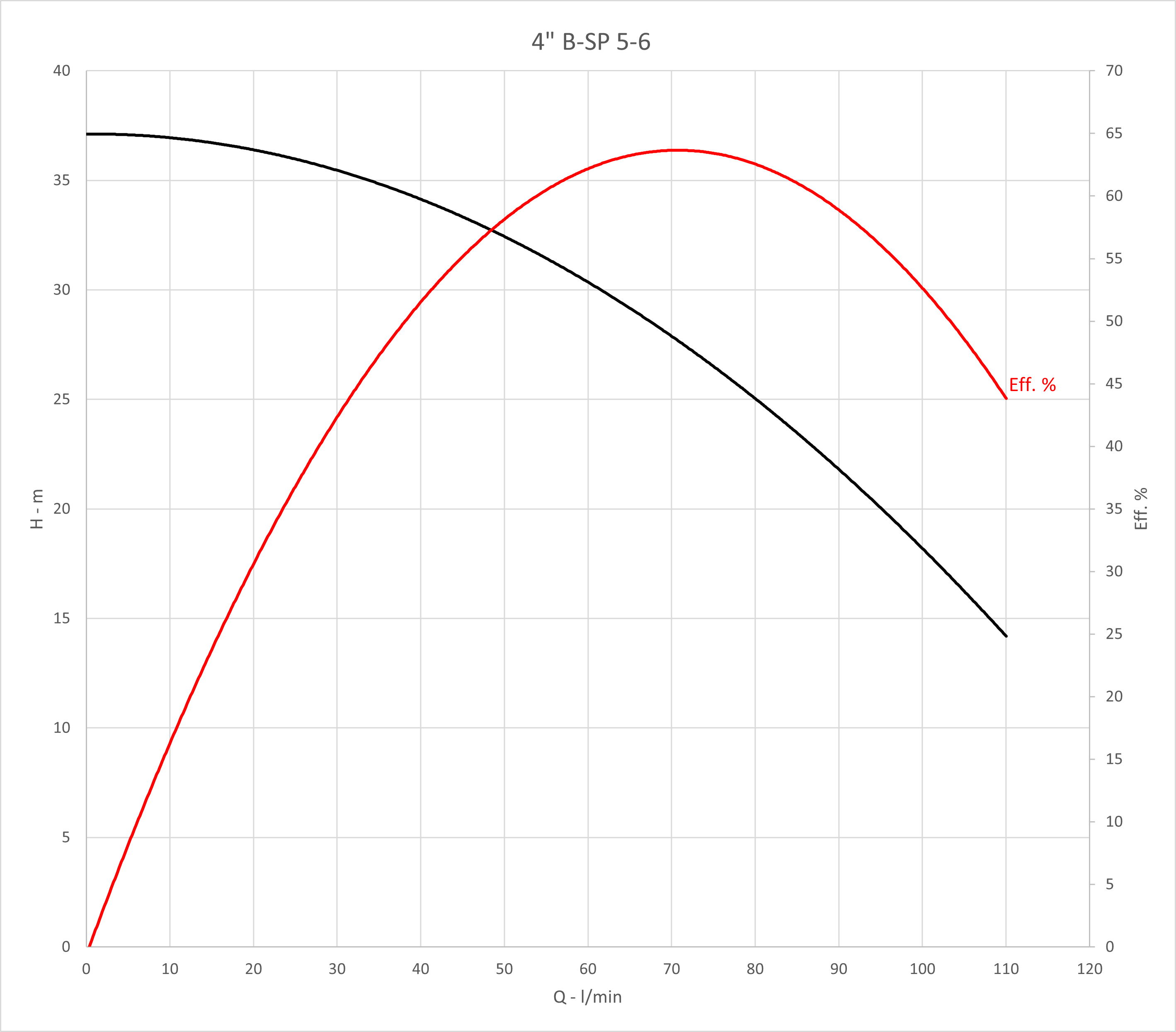 Q max: 110 l/min Spanning: 230 V H max: 38 m P max: 0,55 kW DN afvoer - diameter: 6/4 '' Max. temperatuur van verpompte vloeistof: 35 °C Diameter pomp: 98 mm Huidige: 4,8 A Max. diepgang motor: 100 m Type motor: F.B. submersible motors |