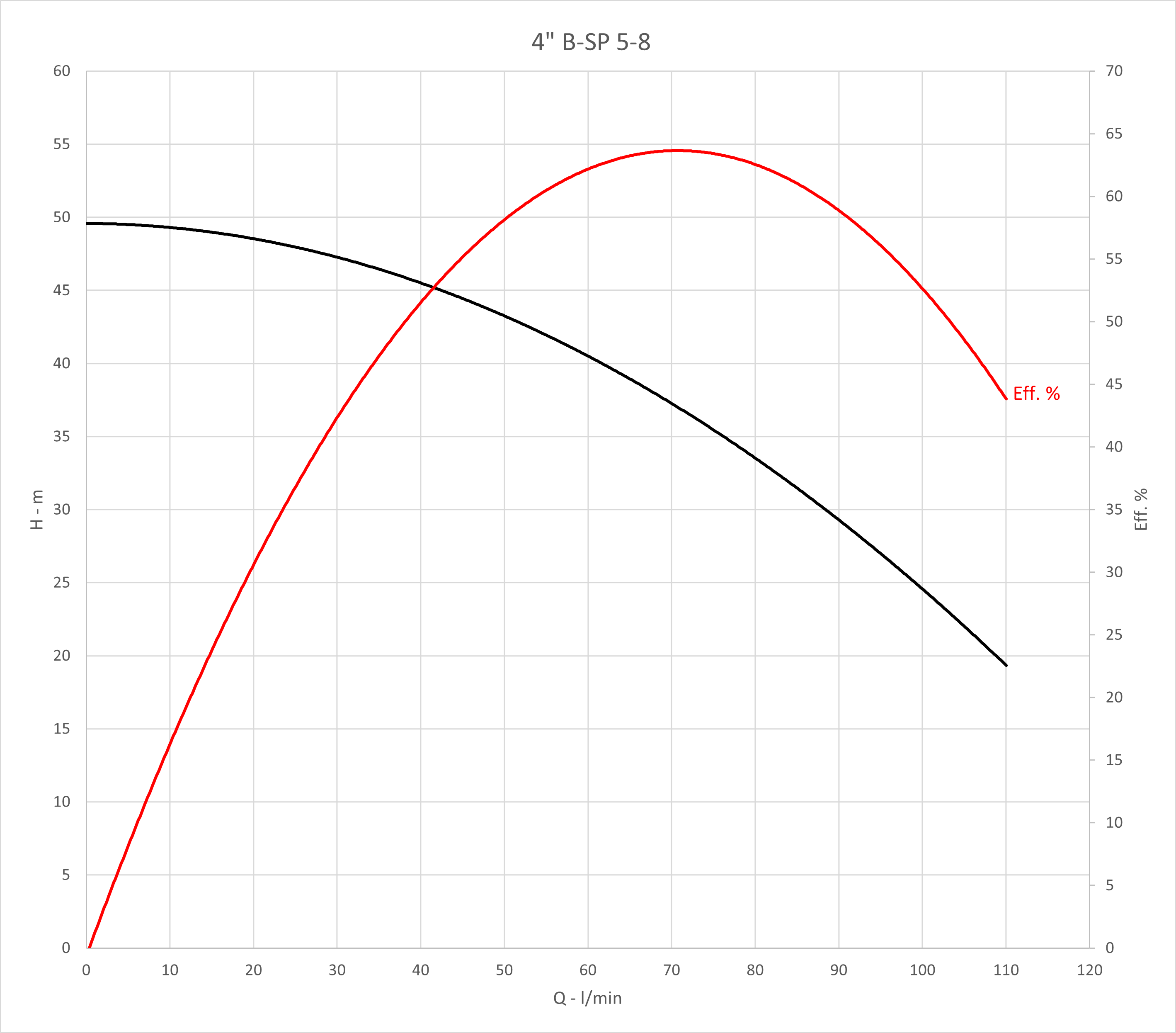 Q max: 110 l/min Spanning: 230 V H max: 64 m P max: 1,1 kW DN afvoer - diameter: 6/4 '' Max. temperatuur van verpompte vloeistof: 35 °C Diameter pomp: 98 mm Max. diepgang motor: 100 m Max. motorstroom: 8,2 A Type motor: F.B. submersible motors |