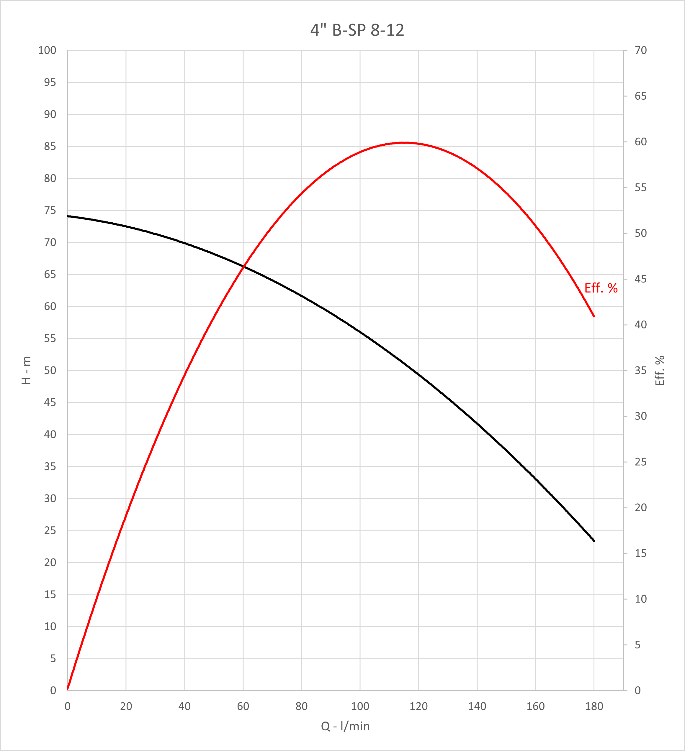 Q max: 180 l/min Spanning: 400 V H max: 159 m P max: 4 kW DN afvoer - diameter: 2 '' Max. temperatuur van verpompte vloeistof: 35 °C Diameter pomp: 98 mm Huidige: 9,2 A Max. diepgang motor: 100 m Type motor: F.B. submersible motors |