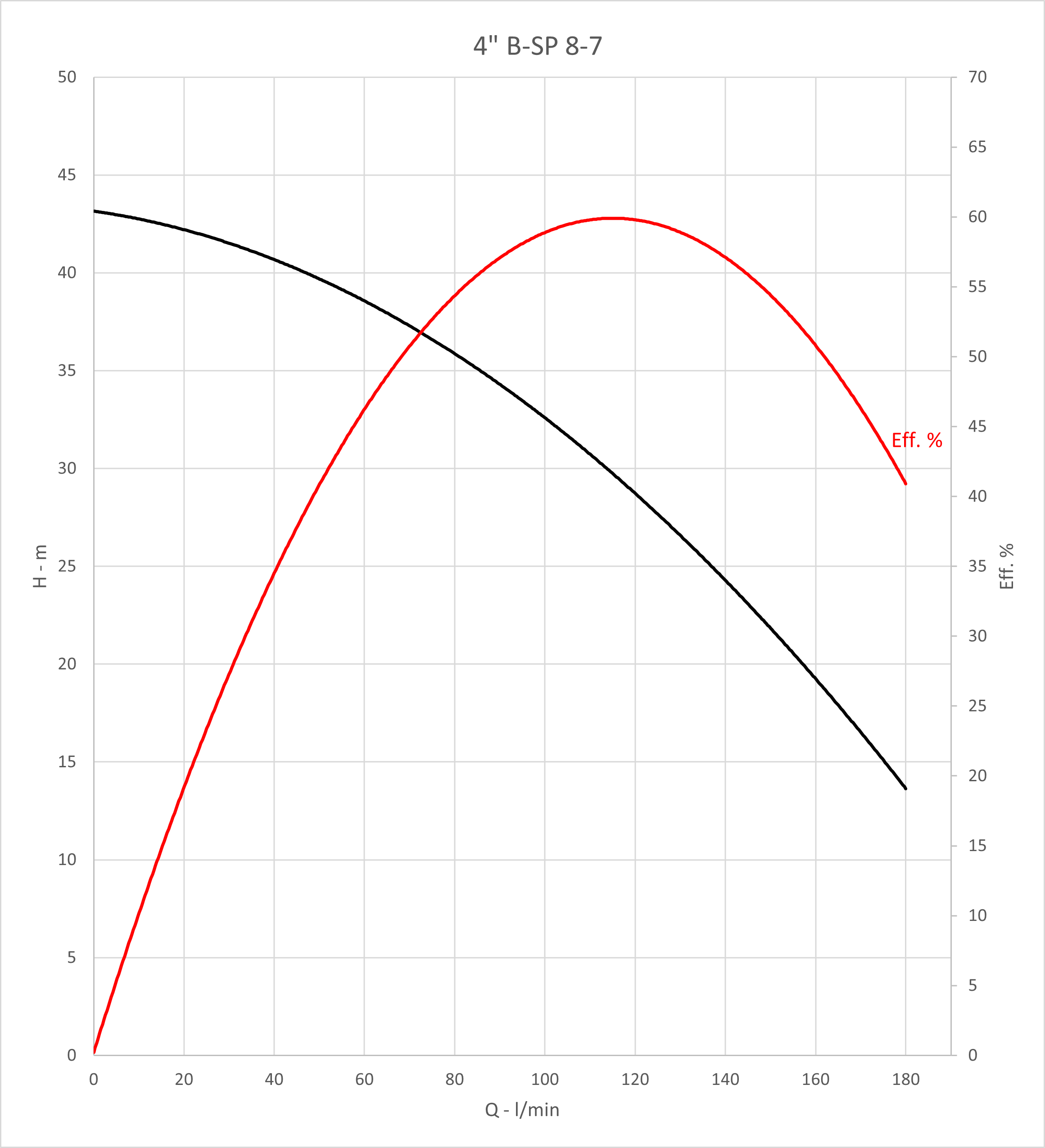 Q max: 180 l/min Spanning: 230 V H max: 64 m P max: 1,5 kW DN afvoer - diameter: 2 '' Max. temperatuur van verpompte vloeistof: 35 °C Diameter pomp: 98 mm Huidige: 10,6 A Max. diepgang motor: 100 m Type motor: F.B. submersible motors |