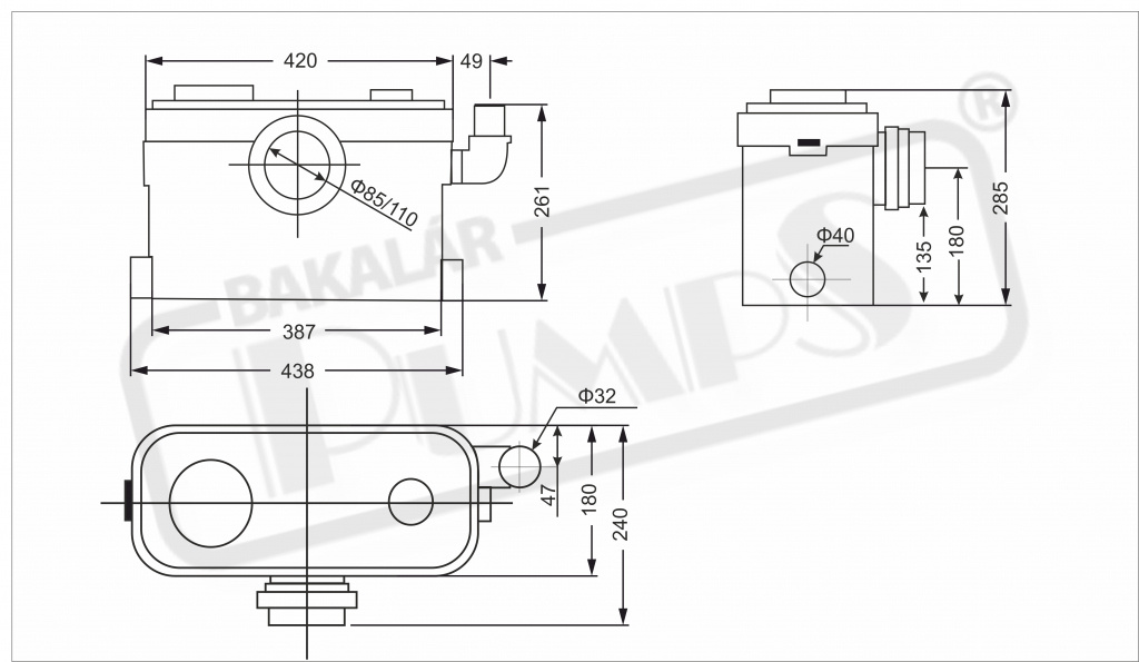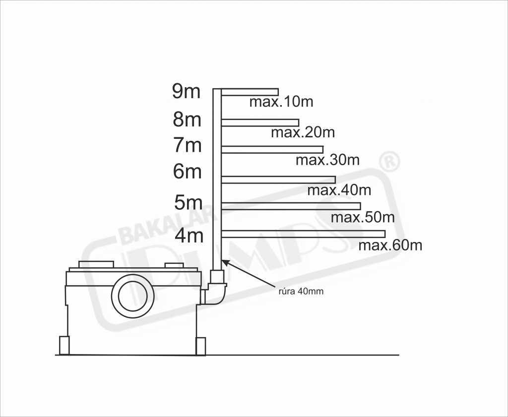SANIBO is een uniek compact pompstation dat de afvoer van elk sanitair in huis mogelijk maakt, wanneer nodig, onafhankelijk van het zwaartekrachtafvoersysteem. De unit onderschept en pompt afvalwater door een dunne drukbuis (>23mm) naar de dichtstbijzijnde lagere buis tot 9m hoogte of een afstand van 60m.