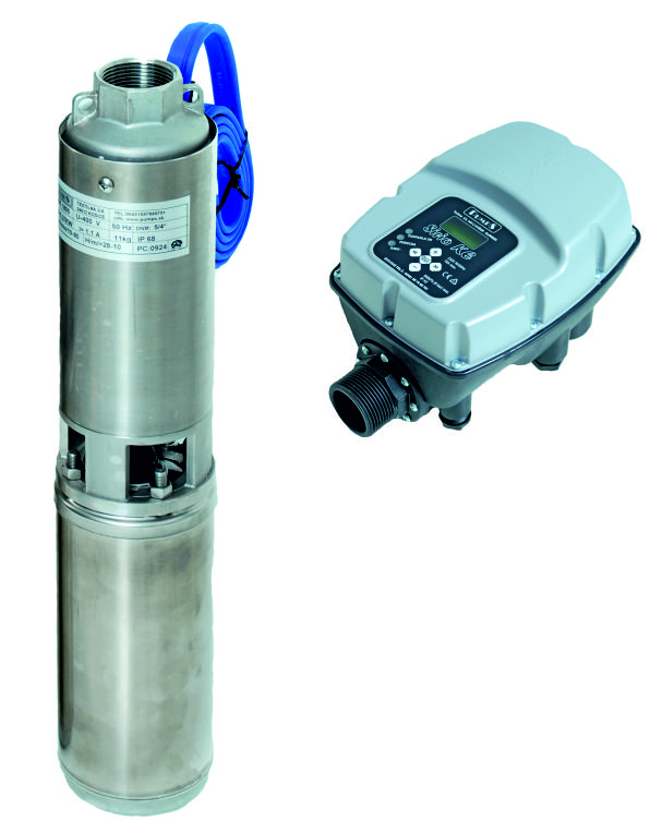 De huishoudelijke waterinstallatie met dompelpomp SM-S 100/120 is een complete huishoudelijke watervoorzieningsset met roestvrijstalen meertrapspomp en Sirio KE frequentieregelaar.