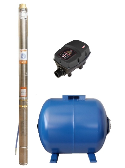 De huishoudelijke waterinstallatie met 3" dompelpomp SM-S 100/77, frequentieregelaar Sirio 2 en drukvat van 24 l is een zeer goede keuze voor huishoudelijke watervoorziening. Met deze kit kun je de omvormer aansluiten op je WLAN-netwerk thuis en zo de parameters van het systeem controleren en aanpassen vanaf elke locatie met internettoegang. / Wifi kaart vereist/.