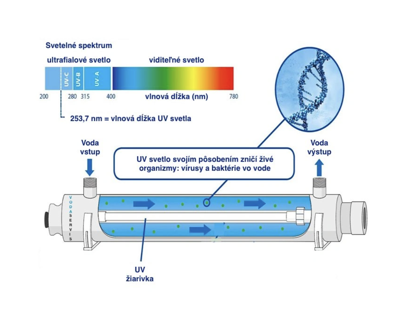 - De UV-lamp is een milde manier om water te desinfecteren in vergelijking met traditionele methoden